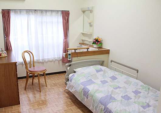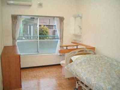 居室設備:介護ベッド、車いす対応トイレ、緊急通報装置、洗面器、チェスト、空調機