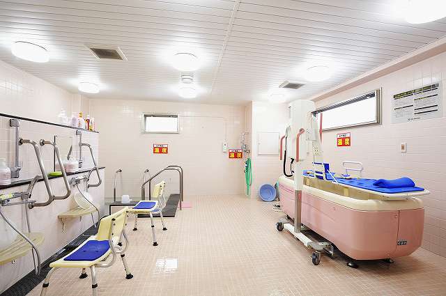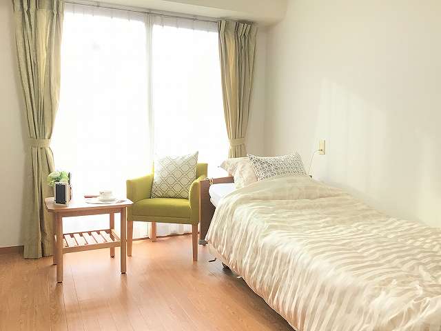 居室設備:介護用電動ベッド・寝具・照明・冷暖房・チェスト・クローゼット・防火カーテン・ナースコール(2ヶ所)・コンセント・洗面所・防火設備(スプリンクラー、熱感知器、非常時放送用スピーカー)・トイレ・TV回線