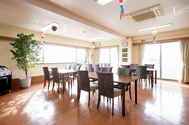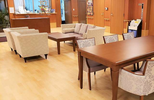 居室設備:電動ベッド、寝具、照明、冷暖房、温水器、チェスト、クローゼット、防火カーテン、ケアコール(2カ所)、洗面所、トイレ(ウォシュレット付)、防火設備(スプリンクラー、熱感知器、非常時放送用スピーカー)、TV回線