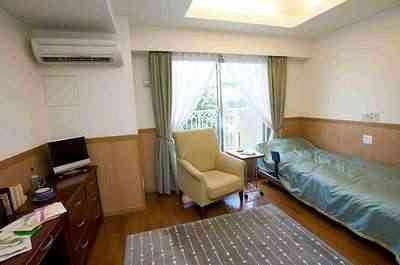 居室設備:家具(チェスト・テーブル・いす)、カーテン(レース・ドレープ)、エアコン、クローゼット、介護対応型電動ベッド(寝具付)、緊急コール、車いす対応洗面台、温水洗浄機能付きトイレ、シューズボックス、玄関ディスプレイボックス