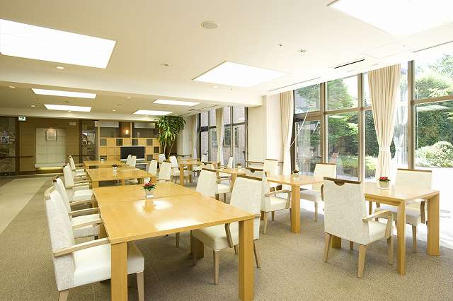 居室設備:家具(チェスト・テーブル・いす)、カーテン(レース・ドレープ)、エアコン、クローゼット、介護対応型電動ベッド(寝具付)、ナースコール、車いす対応洗面台、温水洗浄機能付きトイレ、シューズボックス、玄関ディスプレイボックス