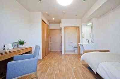居室設備:介護ベッド、床頭台、クローゼット、洗面台、トイレ、カーテン、エアコン、TV端子、電話ジャック