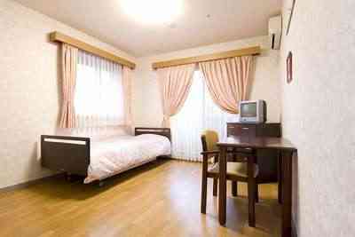 居室設備:介護ベッド、ミニキッチン、洗面台、トイレ、ユニットバス、カーテン、エアコン、TV端子、電話ジャック ※居室タイプにより異なります。