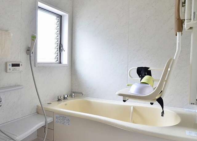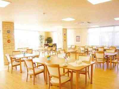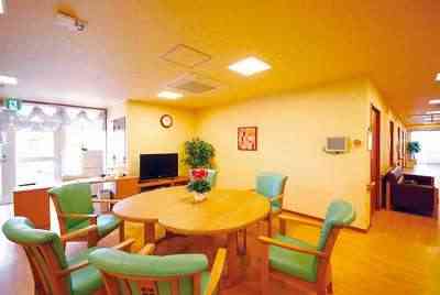 居室設備:介護ベッド、洗面台、トイレ、カーテン、エアコン、TV端子、電話ジャック、帽子ラック・コートかけ、収納、テーブル、テーブルランプ