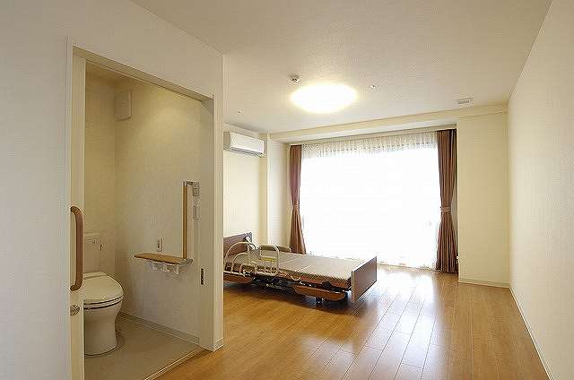 居室設備:ナースコール、冷暖房完備、ウォシュレット設置、介護用電動ベッド(寝具付)