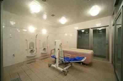 居室設備:ウォシュレット付トイレ、洗面台、エアコン、介護ベッド、チェスト、イス、テーブル、テレビ、カーテン、ナースコール