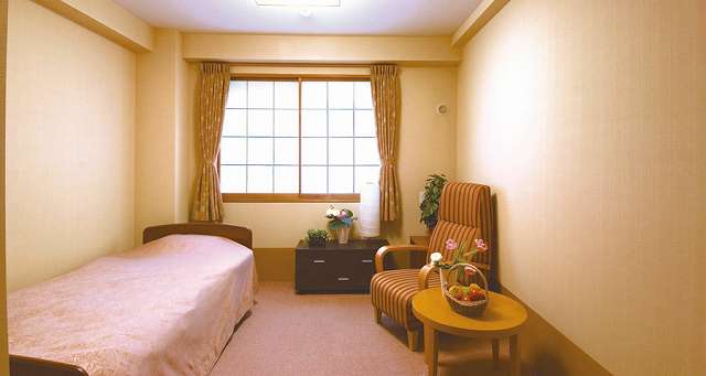 居室設備:介護用ベッド、収納家具、トイレ、洗面台、ナースコール、スプリンクラー、冷暖房、ナイトテーブル