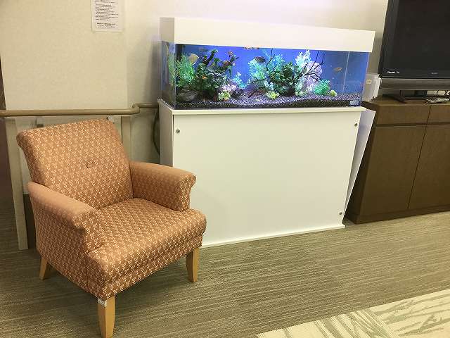 居室設備:介護用電動ベツド・寝具・照明・エアコン・チェスト・クローゼット・防火カーテン・ナースコール(2ヶ所)・コンセント・温水器付洗面所・ウオシュレット付トイレ・防火設備(スプリンクラー・熱感知器・非常時放送用スピーカー)・TV回線