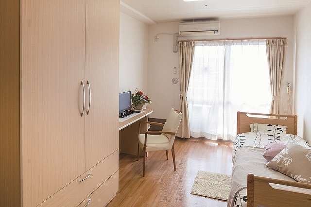 居室設備:トイレ、洗面台、ベッド、クローゼット、カウンターデスク、エアコン、ナースコール、モニターカメラ、スプリンクラー・