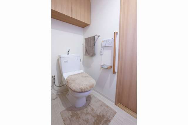 居室設備:緊急コールボタン、ミニキッチン、洗面化粧台、浴室、温水洗浄機能付トイレ、収納スペース、テレビ・電話・インターネット配線 等