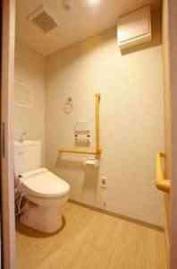 居室設備:ウォシュレット付トイレ、福祉対応型温水洗面台、エアコン、緊急コールボタン