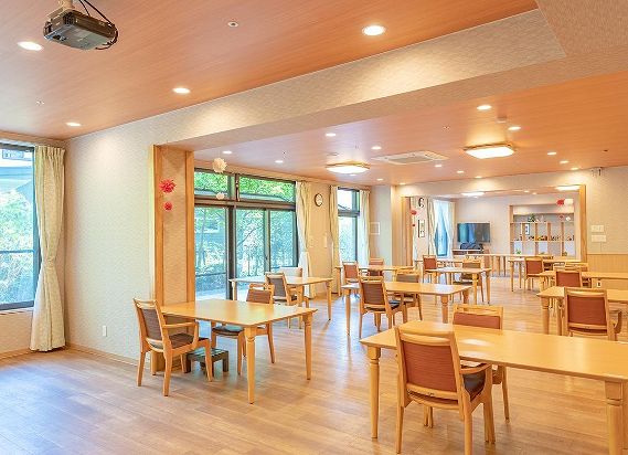居室設備:食堂、一般浴室、機械浴室、機能訓練室、談笑コーナー、健康管理室、一時介護室、エレベーター