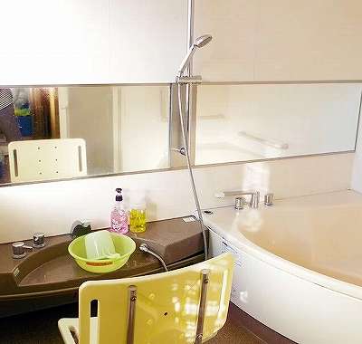 居室設備:洗面、クローゼット、エアコン、介護用電動ベッド(寝具付)、ナースコール、タンス、カーテン