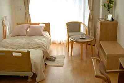 居室設備:スプリンクラー、防炎カーテン、緊急コール、介護専用電動ベット、温水洗浄トイレ、車椅子対応洗面台、エアコン、収納
