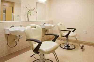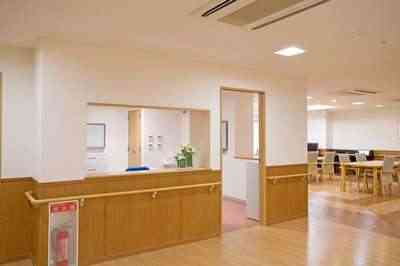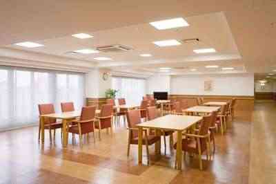 居室設備:エアコン、クローゼット、介護用電動ベッド、ナースコール、車いす対応洗面台、温水洗浄機能付トイレ、カーテン、チェスト、デスク、アームチェア