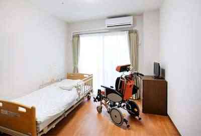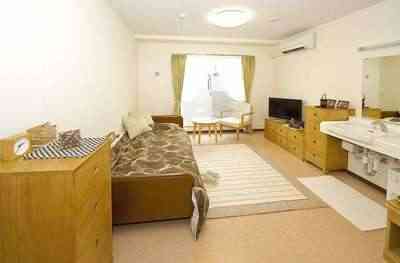 居室設備:介護ベッド、洗面台、トイレ、カーテン、エアコン、TV端子、電話ジャック