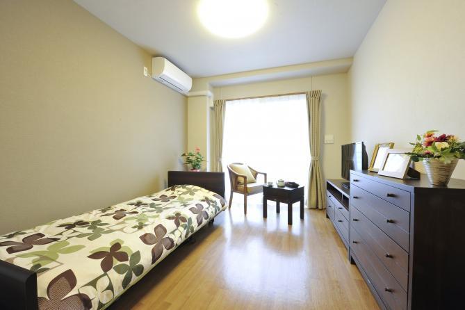 居室設備:介護ベッド、洗面台、収納、トイレ、エアコン、照明、TV端子、電話ジャック