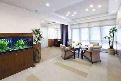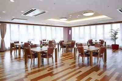 居室設備:介護用電動ベッド(寝具付)、ナースコール、車いす対応洗面台、温水洗浄機能付トイレ、チェスト、クローゼット、デスク、メモリーボックス、カーテン(レース・ドレープ)、エアコン