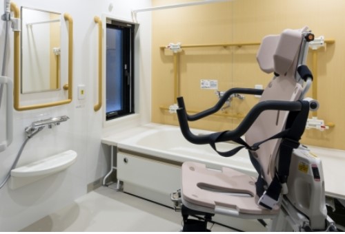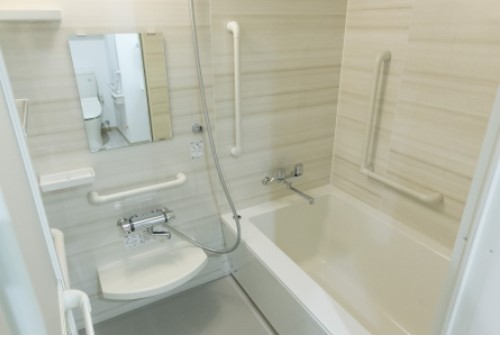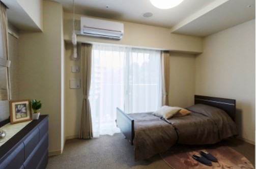 居室設備:介護ベッド(3モーター)、カーテン、エアコン、チェスト、照明、冷蔵庫、洗濯機、浴室、キッチン、温水洗浄機能付トイレ、洗面、収納、スタッフコール