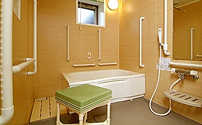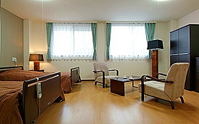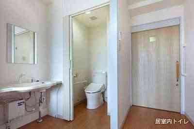居室設備:クローゼット、介護ベッド、カーテン、トイレ、洗面、エアコン・、ナースコール、TV端子、電話端子、照明、スプリンクラー